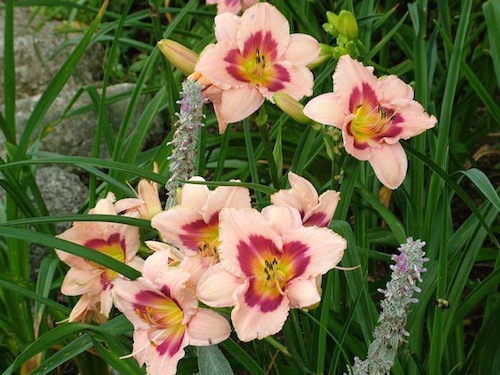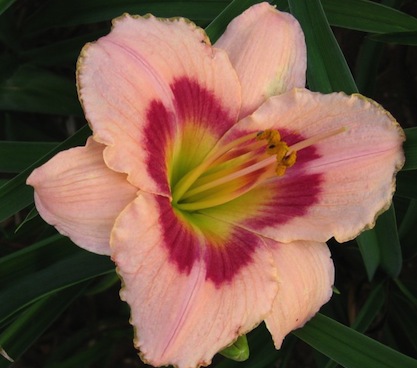 Suured, kroogitud äärtega virsikutooni õied on kauni veinililla keskme ning rohelise südamikuga. Trompetikujulise õiega, püstise, tugeva varrega ja tiheda helerohelise lehestikuga püsik. Väga pika õitsemisajaga taim aretati 1990. aastal Patrick Stamile’i poolt. Loob väga efektiivse pinnasekatte, samas sobib kasvama ka suurde potti. Väga hea vastupidavusega, kuna tema elujõudu ei vähenda ka kuiv pinnas, talvel soolatud teed ega saastatud keskkond. Päevaliiliad on vastupidavad ja rikkalikud õitsejad, vajavad vaid päikeselist kasvukohta. Mulla suhtes väga leplikud taimed. Massina istutades on väga kaunis tulemus. Taime saab paljundada jagamise teel. Aeg-ajalt võiks kontrollida, et kiriteod poleks taime kahjustanud. Muid vaenlasi tal pole, haiguseid ei põe.