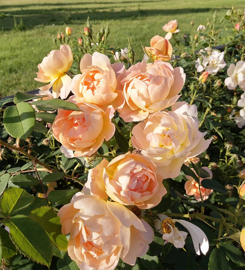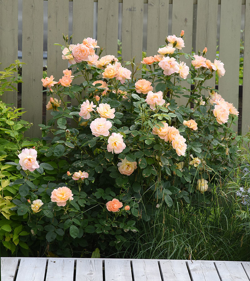 Veetlevate õitega roos toob esile Inglise rooside seas esineva mitmekesisuse. Kahekümne kroonlehega aprikoositooni kausjad õied on kenasti taime peale ära jaotatud. Õied meelitavad aeda erinevaid tolmeldajaid. Taim pakub ka kerget aroomi, mis erinevate õite puhul veidi varieerub, mõni on rohkem tee teine aga pigem mürri lõhnaga. Taim on erakordselt terve ning elujõuline. Õitsenud õitest valmivad dekoratiivsed kibuvitsamarjad.