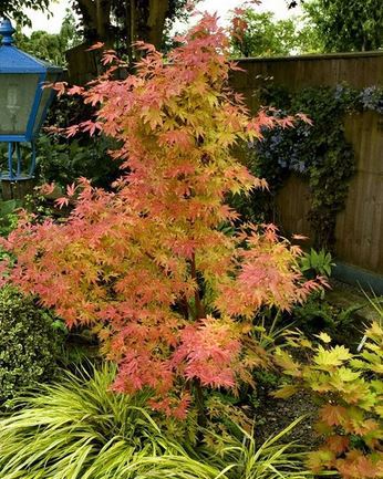 Küllaltki pisike ning aeglase kasvuga heitlehine puu on kitsa püstise kasvuga. Kaunilt erksavärviline lehestik on pidevas muutumises. Rohelise tüvega puu kevadine lehestik on oranži ääristusega ning keskelt kollakas, suve jooksul muutub värv ühtlaselt laimiroheliseks. Sügisel püüab lehestik aga pilke oma kuldkollase, erkoranži tooniga.