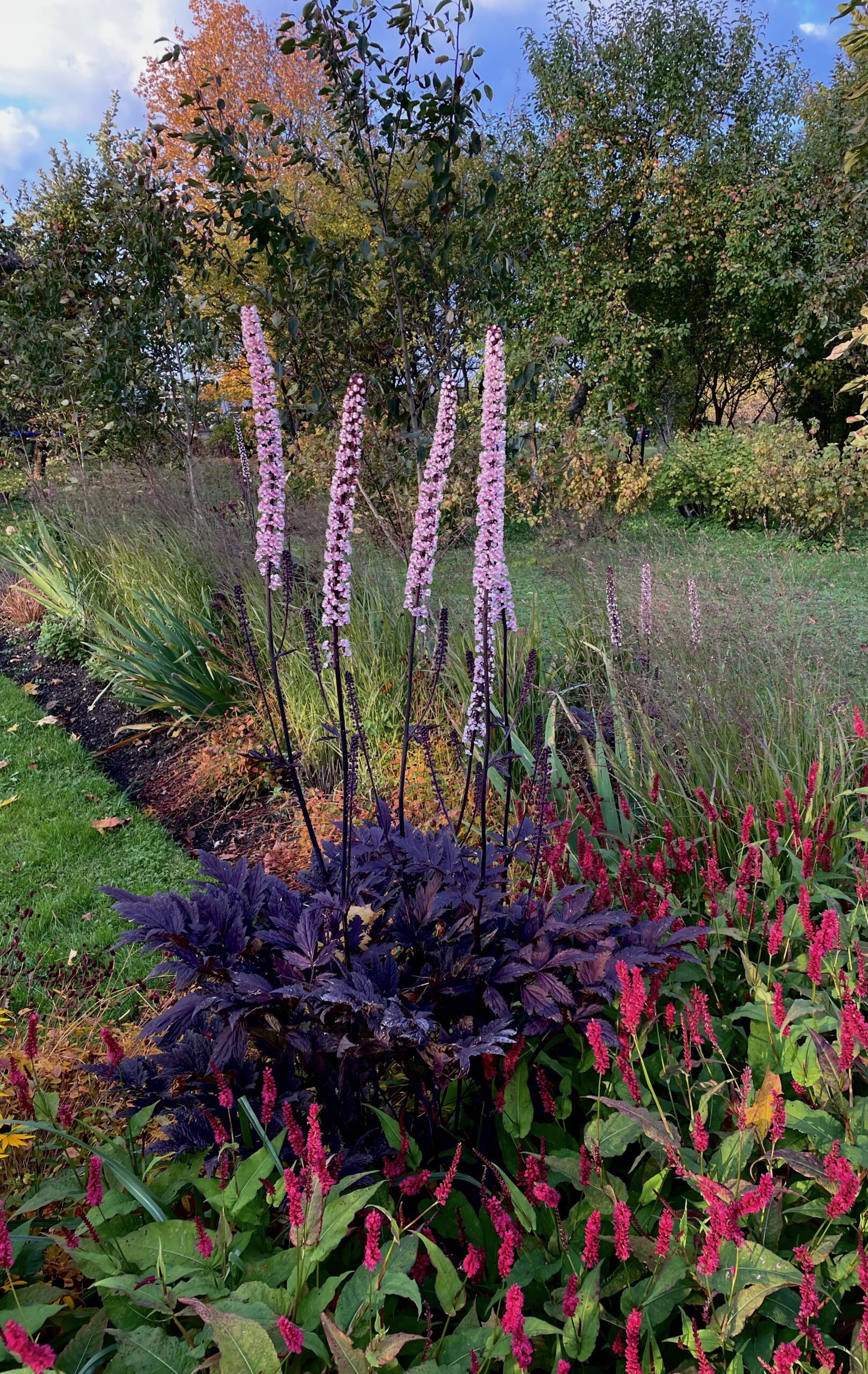 Pikad, pudeliharja meenutavad aromaatsed ja roosakasvalged õisikud tulevad erakordselt hästi esile purpurmustade lehtede taustal. Kõrgeks ja laiaks põõsaks arenev taim on varjulembene, valida tuleks poolvarjuline, hea drenaažiga kasvukoht, et just keskpäevane kuum päike talle otseselt peale ei paistaks. Õitseb suve lõpus, sügise algul. Püsik on hinnatud ka liblikate ja mesilaste poolt. Sobitage kokku erinevate kõrrelistega, helmikpööristega või istutage rühma, eraldi klumbina.