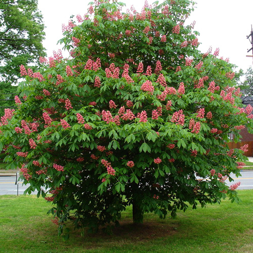 Kompakne väiksem puu, ümara võraga. Juurdekasv umbes 25 cm aastas. Nime on saanud kaunite suurte (kuni 25 cm) punakas-roosade koonuseliste õisikute järgi. Õitseisperiood on kevadel, mais ja kestab 15-25 päeva, alates 10. puu eluaastast. Lehed suured (kuni 15 cm) tume-rohelised, läikivad. Sügisel muutuvad lehed kollaseks ning õite asemel valmivad viljad kastanile omases okkalises rohelises kestas.