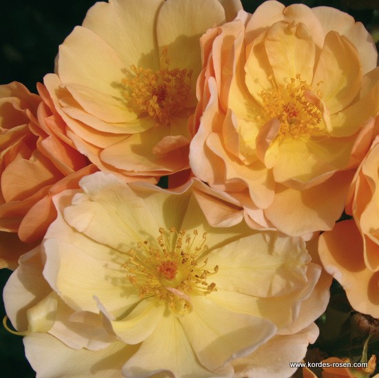 Väikestest oranžikaskollastest õiepungadest avanevad vaskselt kollased ning kreemikad pooltäidisõied, läbimõõduga 5 cm. Ühes kobaras on koos 5-8 õit. Sordil on kaunis tumeroheline ning väga läikiv lehestik. Laiuva kasvuga sort on suurepärane pinnakatteroos, mis terve hooaja vältel armsate õitega kaetud. Sordile on rahvusvahelistel roosivõistlustel omistatud erinevaid medaleid, nende seas kuldmedal Hradec 09, kuldmedal Dublin 07, kuldmedal Lyon 07, hõbemedal Monza 05, pronksmedal Tokio 07, pronksmedal Den Haag 08, sertifikaat Adelaide 2010.