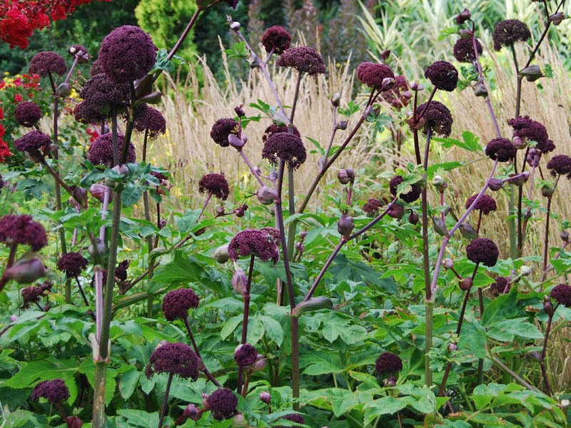 Jõulised, lillakaspunased, tugevasti harunevad varred, arvukad tihedad õisikud ja kikkaputkele iseloomulikud efektsed suured tumerohelised lehed sobivad eriti kivide taustale kruusaaeda. Julgete tumepurpursete toonidega värvunud õiepungad avanevad kuppeljates õisikutes ning meelitavad ligi liblikaid. Õitseb juuli lõpust sügiseni. Taim vajab palju ruumi, kasvab suureks ja moodustab 45-80 cm läbimõõduga põõsa. Muld peab olema viljakas, eelistab kerget varju, rikkaid, piisavalt niisutatud, kuid mitte rõskeid muldi. Euroopas väga populaarne taim sarikaliste sugukonnast, mida kasutatakse aedades struktuurse dominandina.