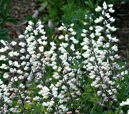 Lupiinisarnane hernetaoliste õiekestega püstine kompaktse võraga püsik. Vastupidav, kuigi pigem aeglase kasvuga. Õitsemisperioodil valgeks värvuvad taimetipud loovad kauni kontrasti söekarva vartega. Sinakasroheline lehestik moodustab tugeva püstise puhma. Taim on leplik. Istutuspinnaks sobib kõik kuivast niiskeni. Kannatab nii kuumust, kui ka suurt õhuniiskust.