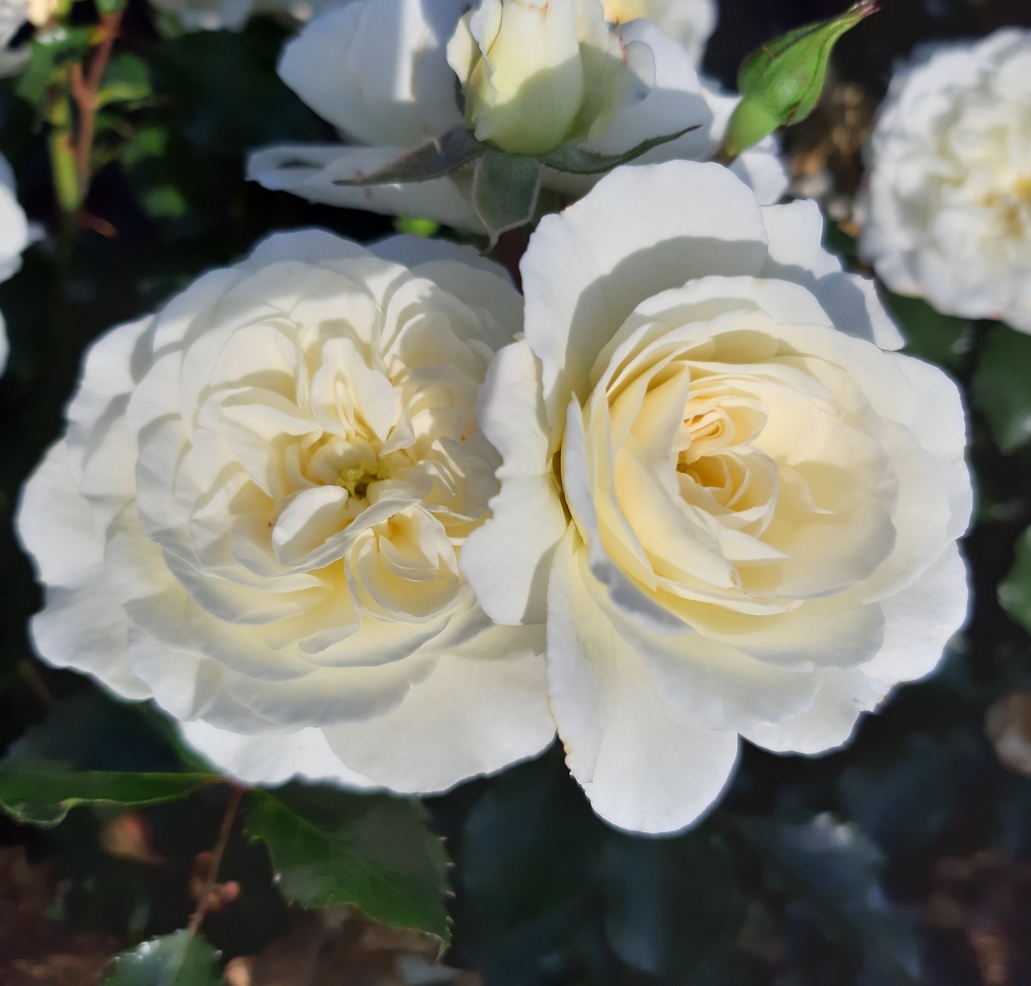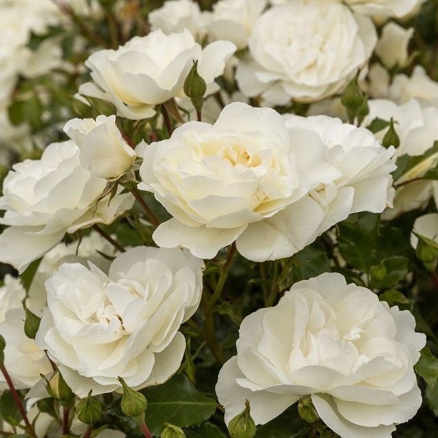 Pinnakatteroos, mis moodustab lühikese ajaga tugevad, puitunud võrsed ning kasvab madala ja laiuva kujuga . Seetõttu sobib ta hästi nii väikeaedadesse, rõdudele ja terrassidele kui ka massistutusse. Keskmise suurusega, kuni 4 – 6 cm läbimõõduga valged pooltäidisõied on keskelt õrnalt kreemikama varjundiga, meeldivalt tagasihoidliku lõhnaga ning tõusevad eriti efektselt esile tumerohelise, läikiva lehestiku taustal. Põõsas õitseb rikkalikult ja pikalt juunist oktoobrini.