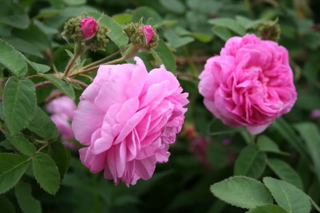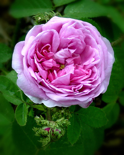 Õied on longus, roosad ja täidisõielised, kroonlehti 26–40; õievorm on kausjas ja neljandikeks jaotunud ning väga tugeva lõhnaga. Õiepõhi lõpeb narmastega tupplehtedega, mis ümbritsevad punga ja meenutavad Napoleoni kahetipulist kübarat (bicorne). Taim kasvab jõuliselt ja põõsasjalt, tal on kaunis lehestik, hea haiguskindlus ning ta talub ka poolvarju.