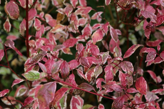 Roheline, valgete laikudega lehestik ja kontrastsed punased varred sellel kontpuul tulevad efektselt esile nii varjulises nurgas kui ka teiste roheliste taimede seas . Sügise algul muutuvad lehed roosakaks, hiljem süveneb toon kuni sügavpurpurseni. Eriti efektselt tulevad varred esile talvel, lumisel maastikul. Suur ja lai põõsas sobib pilku püüdma nii üksikult kui ka hekina. Õitseb kevadel väikeste, valgete õitega.