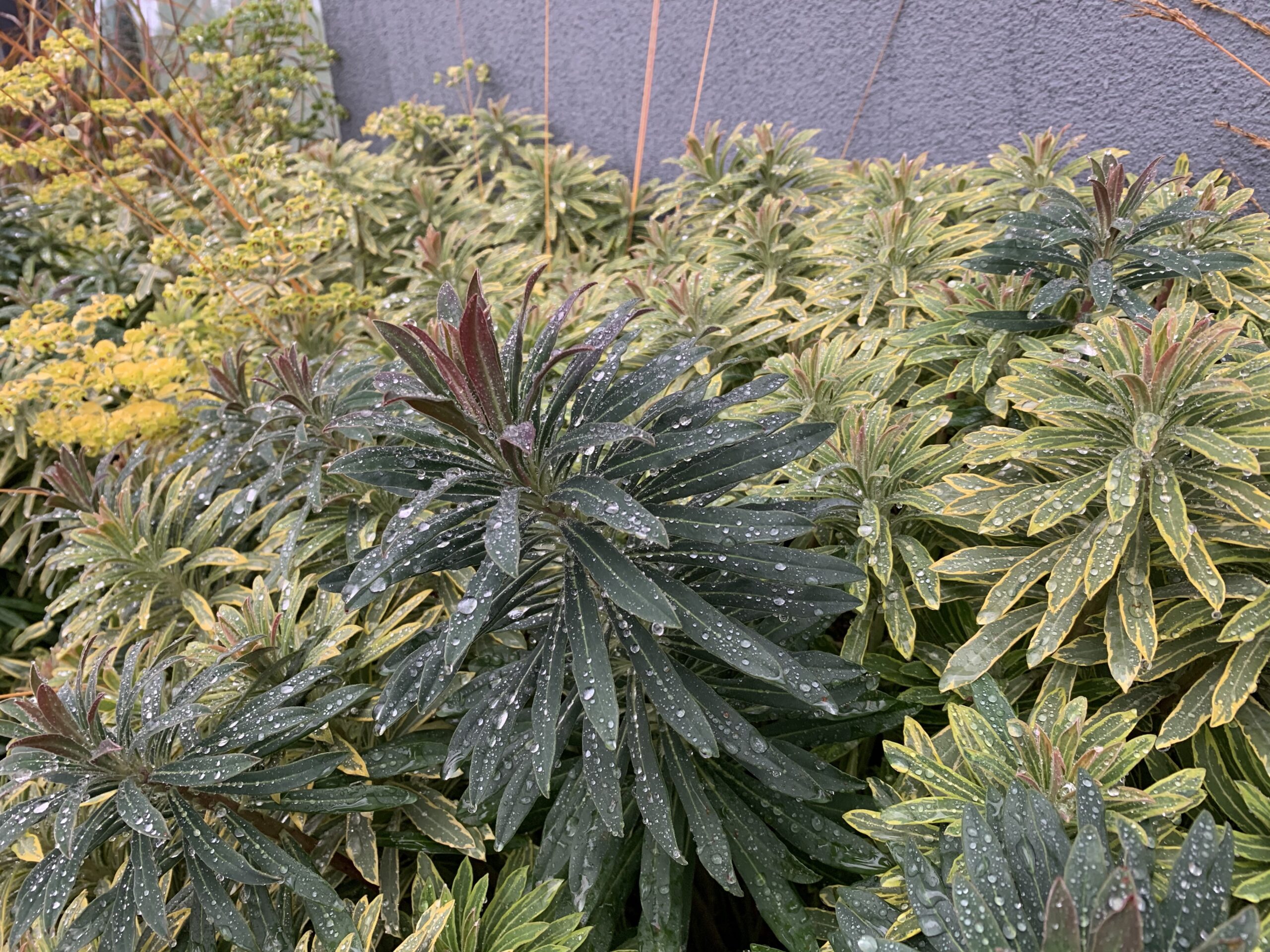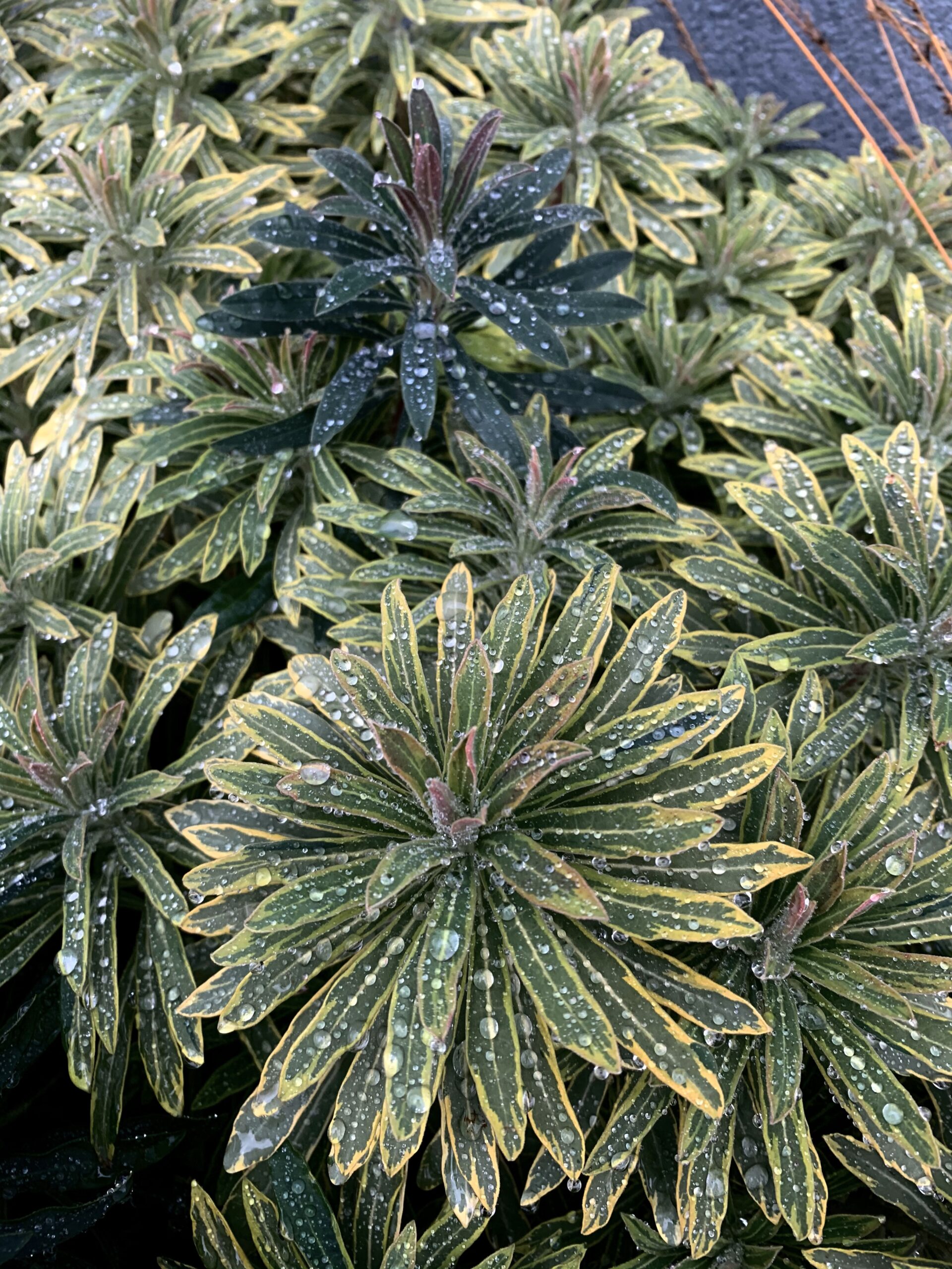 Antud piimalille omapära on värvilised, igihaljad lehed. Lehed asetsevad järjestikku kogu varre pikkuses, moodustades koheva tuusti, lehed ise on rohelised, kollaste laikude ja äärega, muutudes talvel roosakas-punakaks. Õied on laimikollased, punase südamikuga, õitsevad suve algul. Meelitab liblikaid. Närtsinud õied tuleb eemaldada, et anda ruumi uutele võrsetele. Ettevaatust, taim on mürgine, käsitlemisel võib tekkida allergiline lööve.