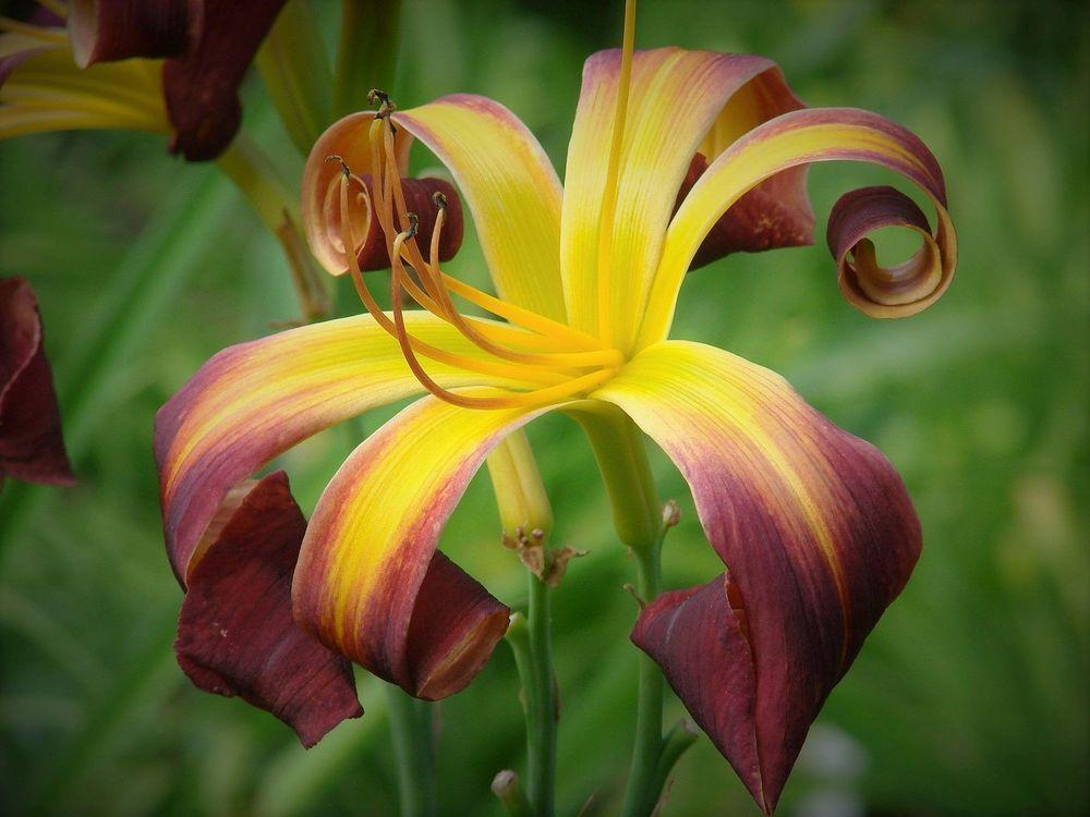 Sametise pinnaga, suured, krussis kroonlehed on kaunilt kontrastsete värvide kooslusega, purpursed ja kollase südamikuga. Tema kõrrelisi meenutav lehestik säilitab oma rohelise värvi terve hooaja vältel. Suurepärane lõikelill. Kiirekasvuline ning vähe hoolitsust nõudev taim, ka mullastiku suhtes väga leplik. Parim aeg tema vana lehestiku eemaldamiseks on varakevad, enne uute kasvude arenemist. Tegemist on hea valikuga, kui on soov meelitada aeda ka liblikaid. Päevaliiliad on lihtsasti kasvatatavad, rikkalikult õitsevad ja tänuväärsed püsililled igasse aeda. Istutada võib rühmadena või massina. Peale kiritigude pole neil ka eriti vaenlasi.