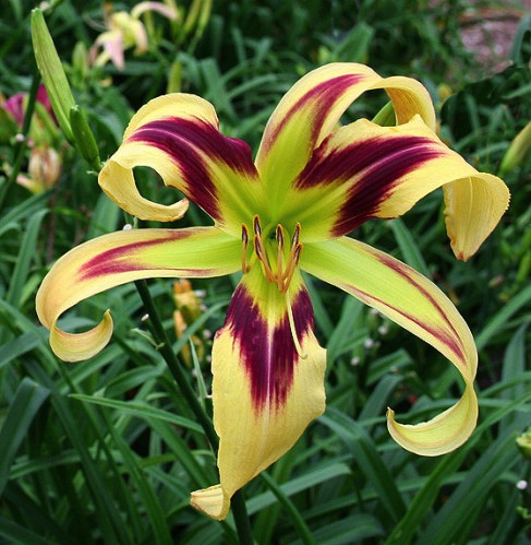 Päikeselemb päevaliilia. Pikalt harali sirutuvad kergelt lokilise äärega kroonlehed on kaetud põnevate värvitoonide seguga, kus mänglevad kreemjaskollane koos burgundia punasega ning täienduseks veel emeraldroheline südamik. Kuigi üks õis püsib vaid päeva, siis kuna taimel on õiepungi arvukalt, saab ikkagi nautida pikemaajalist õitsemist. Kaunis taim rühmadena istutada maakodu-aeda, püsikupeenrasse. Massina istutades saab edukalt kasutada imelise pinnakatjana, kuna lehestik püsib kaunis kogu hooaja vältel ja kesksuvel õitseb taim rikkalikult ja kaua. Aeg-ajalt tuleks kontrollida, ega kiriteod pole taime kahjustanud. Sügisel võiks lehestiku trimmerdada maha. Kevadel ilmuvad värsked lehed.
