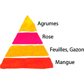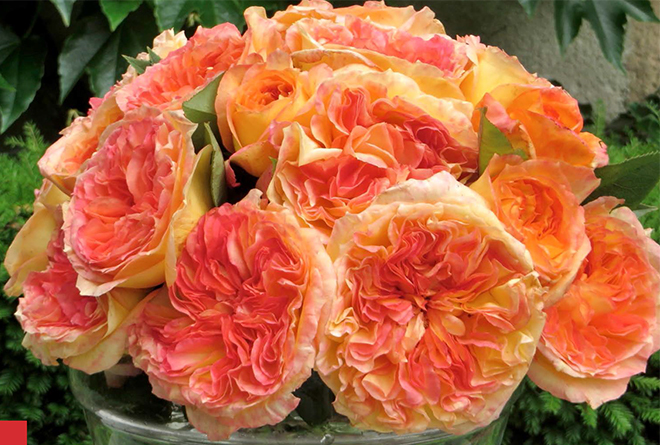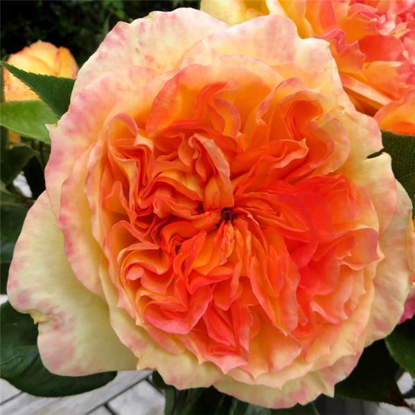 Säravad, suured oranžikaskollased õied avanevad laiadeks, kroonlehtedest tugevalt täidetud rosettideks, mis värvuvad intensiivsemasse oranži tooni. Õite värvidemäng on kui suvine päikeseloojang, avades meeltele ka puuviljalise aroomibuketi rohelistest murunootidest, äratuntavast roosist, tsitruselistest ning mangost. Püstine põõsas, terve ja tumeroheline lehestik. Suurepäraselt sobiv lõikelilleks, õied püsivad vaasis kaua.