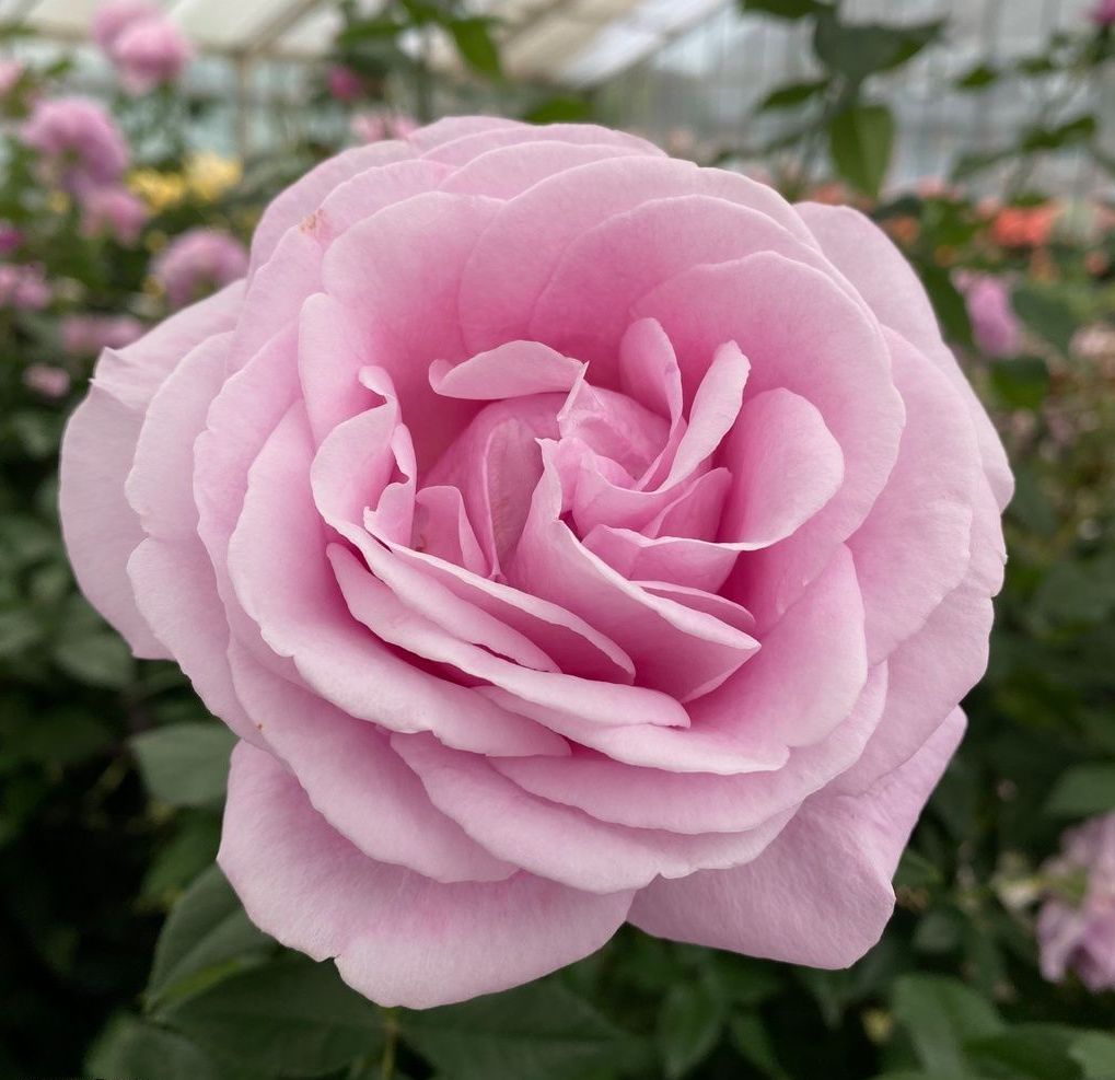 Teehübriidroosi ‘Carmen Würth’ (ADR 2018) roosa värvimutatsioon.