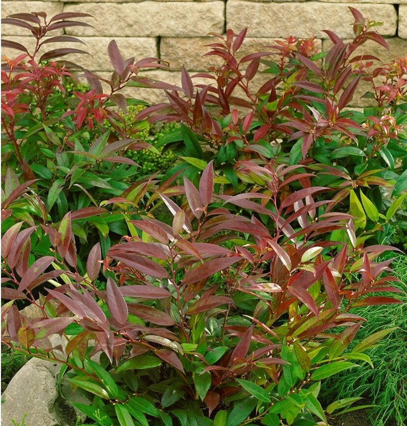 Kaarduvate okstega graatsiline põõsas on suurepärane nt suuremate põõsaste alla pinnakatjana. Kevadine põõsas on kaetud kreemjate õiekestega. Suvine lehestik on läikiv ja roheline, sügiseks omandab punakaid, purpurseid toone. Külmematel sügispäevadel värvub lehestik üleni purpursetesse toonidesse. Värv püsib kuni kevadeni, mil hakkavad ilmuma uued lehed. Tänu rikkalikule värvile on hea mõte paigutada põõsas nt heleda aia taustale, kus tema kaunis värv saab tänu tugevale kontrastile eriti kenasti esile tulla.