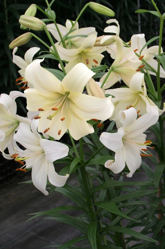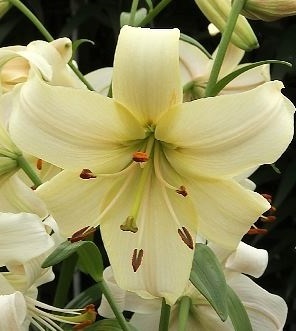 Tugevate vartega, suurte ( 12 – 15 cm) tähekujuliste õitega liilia. Kroonlehed kreemikasvalged, kaarduvad taha, avades roheka tooniga südamiku ja pikad oranži tipuga tolmukad. Varrel kuni 20 õisikut, väga kaunis efekt roheliste lehtede taustal. Sibula suurus 18+.