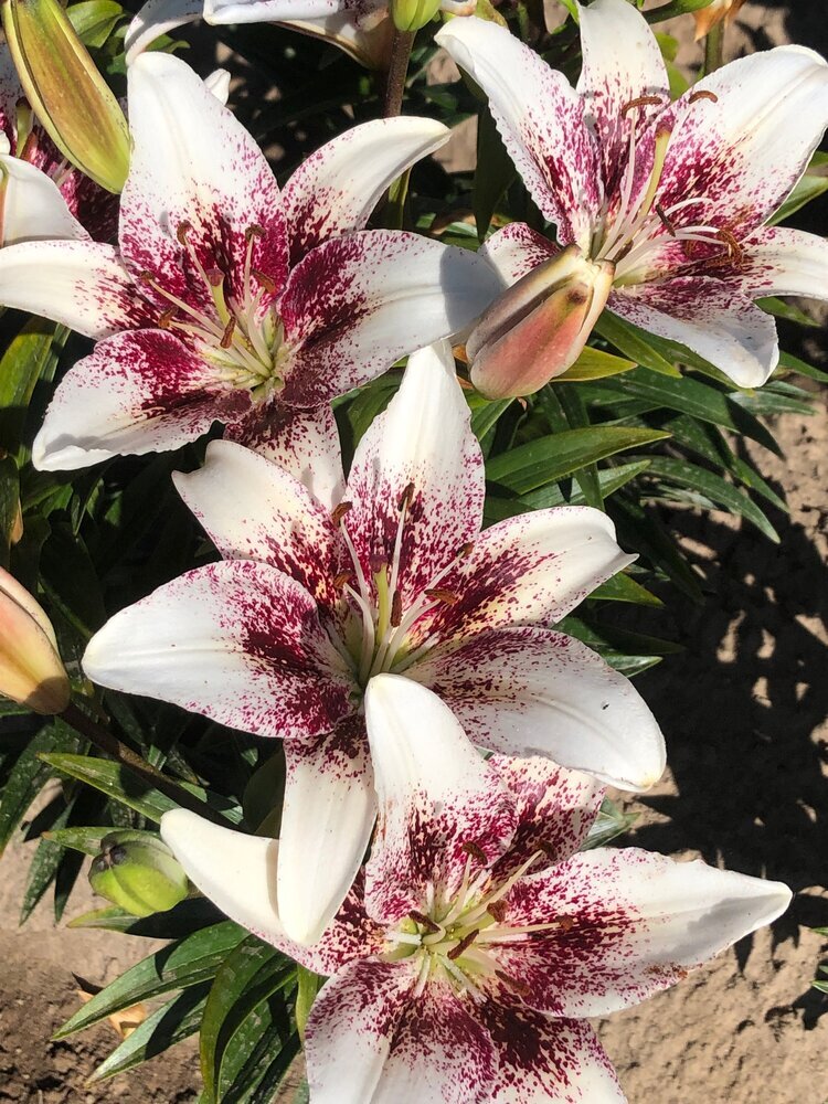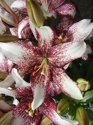 Väga usaldusväärne sort. Aasia liiliad on varasemate õitsejate seas. Tugevate õievartega liilia, sametiste, valgete õitega, mil keskmes veinipunaste träpsulised laigud. Suured kuni 12 cm õied ei lõhna. Sibul 14cm +