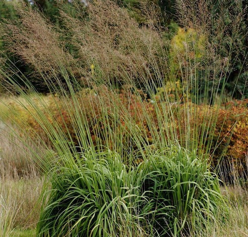 Kauni puhma moodustav kõrreline, mille lineaarne lehestik muutub sügisperioodiks säravalt kuldkollaseks. Jäikade õievartega kaunis ornamentaalne kõrreline. Lillakad, peaaegu läbipaistvad peene hargnevusega õisikud, hõljuvad graatsiliselt üle madala kaardus lehestiku. Tegemist on ühe kauneima kõrrelisega sinihelmikute seas. Väga kaunis taustataim, kus kasvavad heleeniumid, kõrged astrid, astilbed, raudrohud, kirburohud, kolmetised vesikanepid jne. Dramaatilisust saab lisada taimele, kui sobitada teiste dekoratiivsete kõrrelistega.