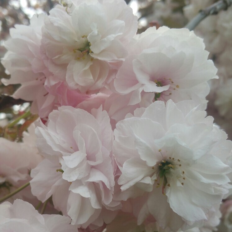 Keskmist kasvu, laiuva kasvukujuga dekoratiivne kirsipuu, mille õied on satsilied, rikkalikult täidetud, varieerudes suhkruvatisarnasest heleroosast kuni puhasvalgeni kui õied on täielikult avanenud. Suured valged pooltäidisõied on lõhnavad ja kuni 5 cm läbimõõduga, puu õitseb rikkalikult. Noored lehed on pronksjad helerohelised, suvine lehestik tumeroheline, lehed sakilise servaga. Atraktiivne oranžikas-punane sügisvärv. Vilju ei moodusta. Sobilik nii soolopuuks kui istutada väikeste gruppidena. Pärjatud AGM tiitliga (Award of Garden Merit)