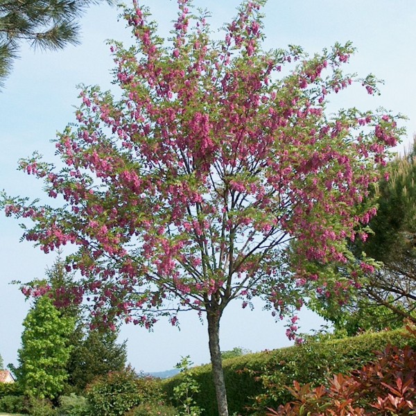 Kauni hargnevusega suurem dekoratiivne puu. Püstise kasvukujuga sordil on noorena kiire kasv, vanemaks saades kasvukiirus väheneb. Sordi eripäraks on suve alguses avanevad 15 cm pikkused, rippuvad õisikud, õied on purpurjad ereroosad, õiekuju sarnaneb lillherne õiele. Lehestik püsib kevadel ning suvel roheline, sügisel muutub värv kollaseks. Võib ka teistkordselt, suve teises pooles õitseda.