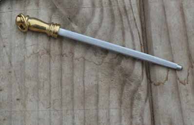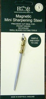 Terasest väike ja mugav, 7 cm pikkune kääride teritaja. Messingist peaga.