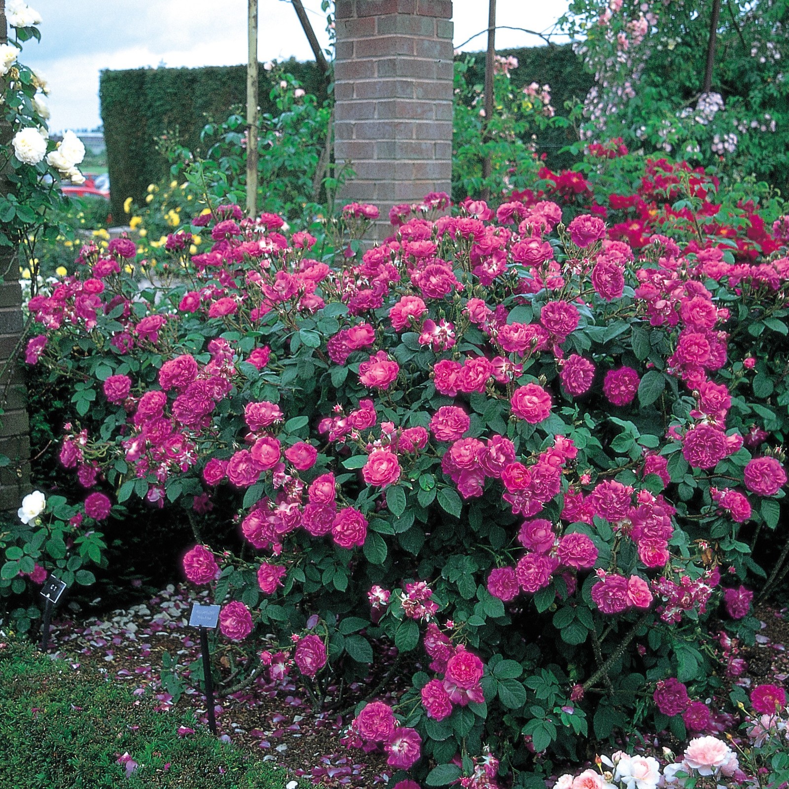 Vanaaegne põõsasroos, suurte rikkaliku lõhnaga purpur-magenta tooni pooltäidisõitega, mille südamikus kollased tolmukad. Roos on ühekordse õitsemisega, pleekides tuhmuvad lilla, sirelililla ja violetse-halli varjundiga. Õienupud on tihedalt kaetud nn. vaiguse samblaga. Lehed tumerohelised, poolmatid, varred ja õienupud karvased väikestest okastest.